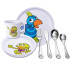Sødt Kaj og Andrea sæt med krus, tallerken, dybtallerken og bestik.