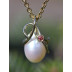 Vedhæng - Fervandsperle drop med 14 karat guldtråd og pink brillant (11/25)