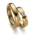 Lækre Gerstner vielsesringe i guld og med brillant i spændfatning i dameringen.
